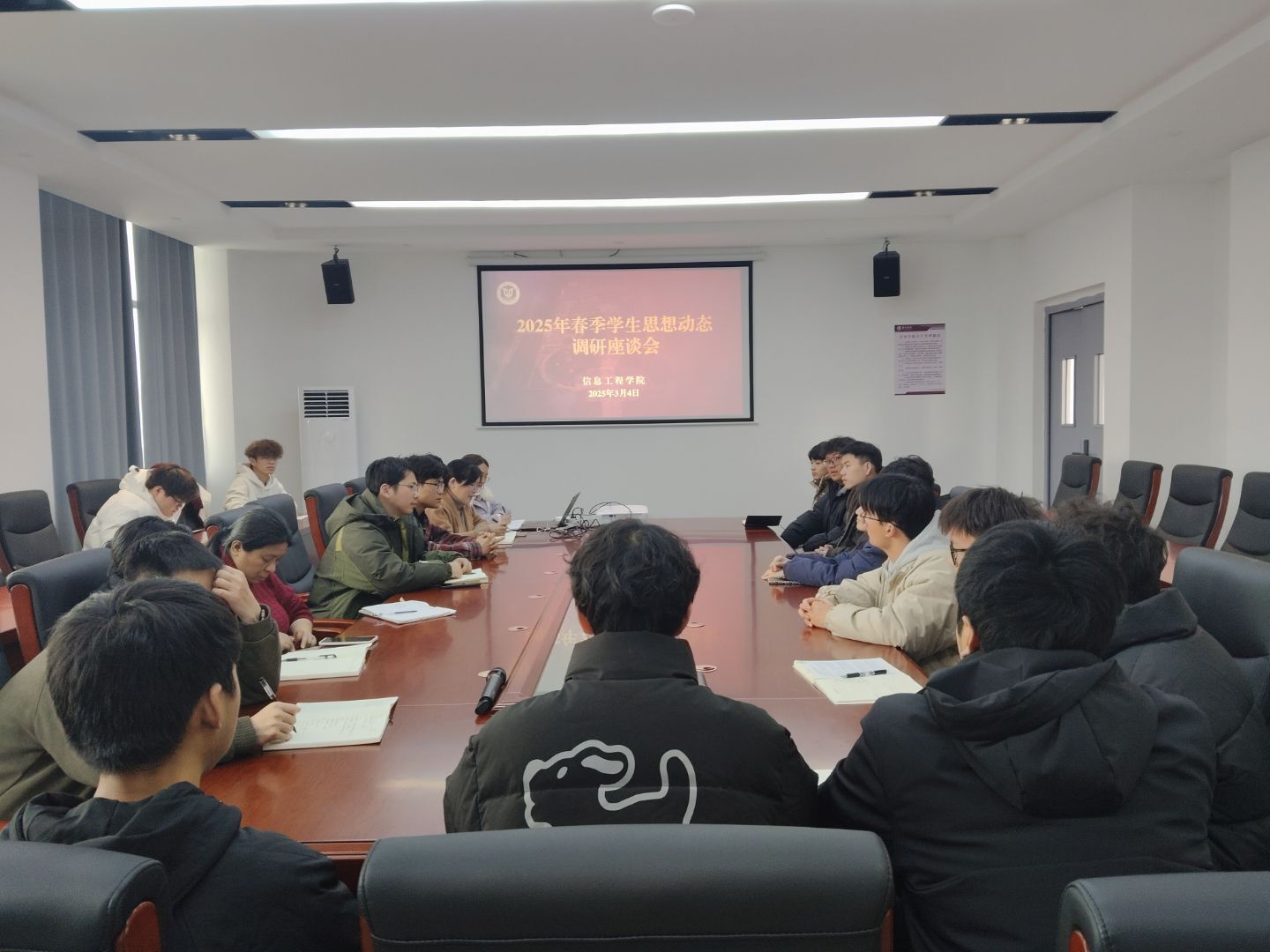 3月4日,信息工程学院在信工楼512会议室成功举办了春季学期学生思想动态调研座谈会。此次座谈会旨在深入了解当前学期初我院学生的思想状况、学习需求及生活状况,进一步加强和改进学生思想政治教育,促进学生健康成长和全面发展。学院党总支负责人曾德芬、各年级辅导员出席了本次会议,各年级学生代表参会。