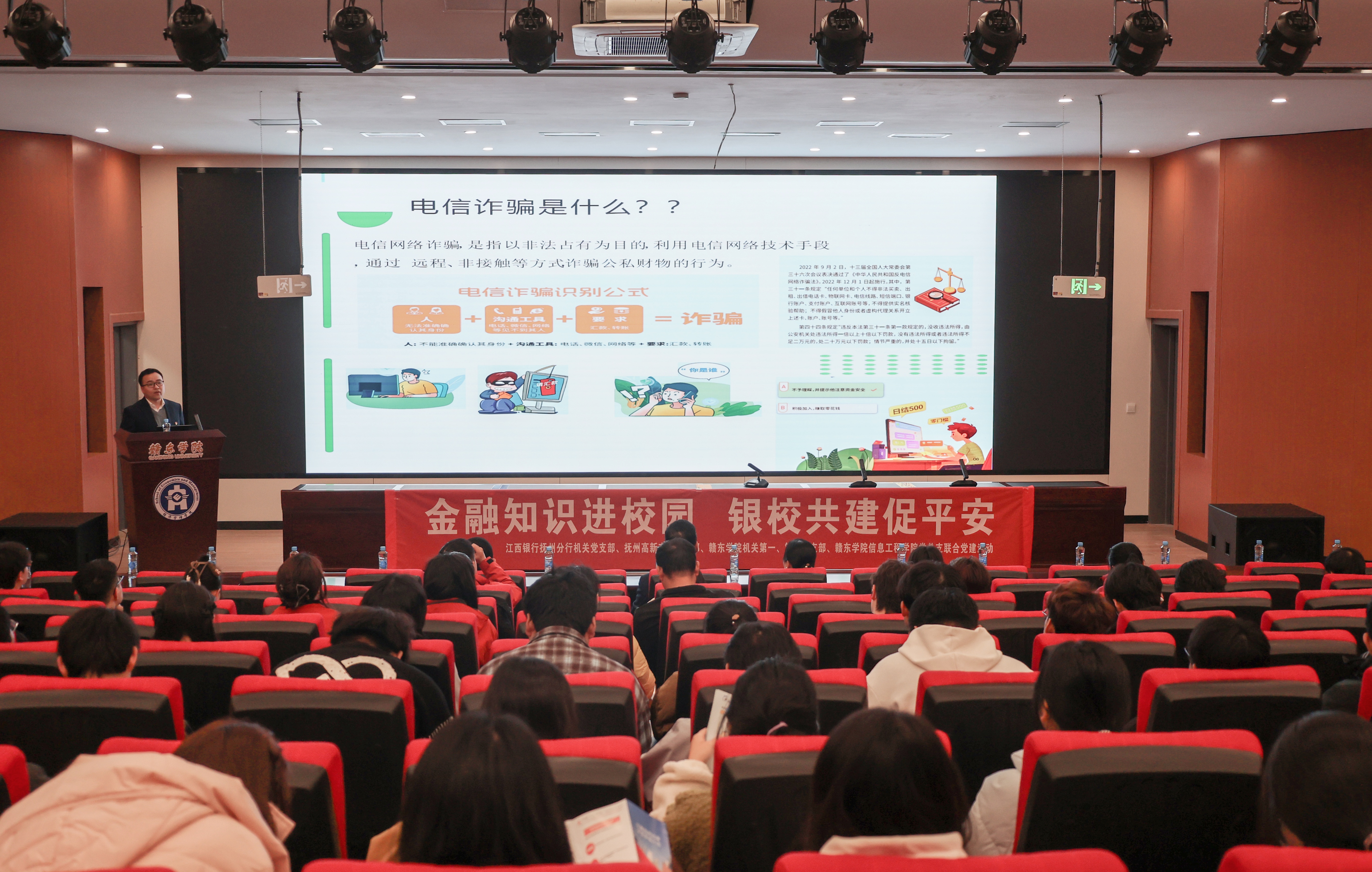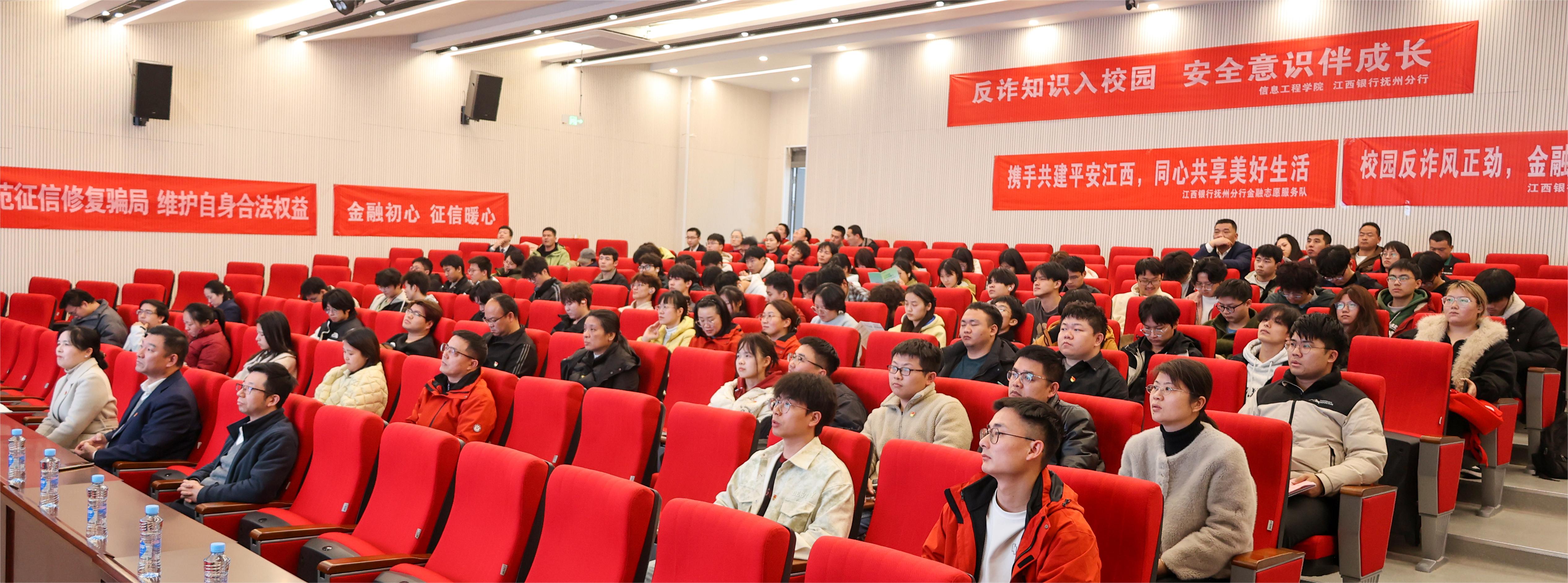 为深入贯彻落实党的二十大精神,充分发挥党建引领作用,筑牢校园反诈防线,3月14日下午,信息工程学院党总支联合江西银行抚州分行党委、赣东学院机关第一、第三党支部开展“党建聚力,反诈同行”主题党日活动。学院师生党员代表及入党积极分子100余人参加活动,共同打造平安校园建设“红色防护网”。