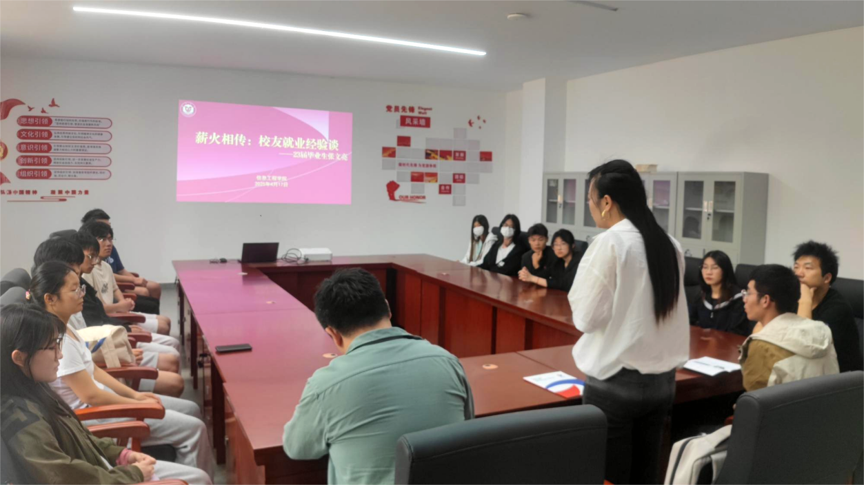为帮助我院学生明晰职业规划、应对就业挑战,4月17日下午,信工学院 “校友返校座谈交流会”在信工楼101会议室如期举行。2023届软件工程专业校友张文亮以自身跌宕起伏的求职成长经历为蓝本,为学弟学妹们带来了别开生面的经验分享;同时,校友就职的台州鑫源电机制造有限公司的HR吕金丽也亲临现场,为即将踏入就业道路的同学们带来最新的岗位信息,传授求职技巧,干货满满。座谈会由学院就业干事徐宏伟老师主持,各年级学生代表参加。