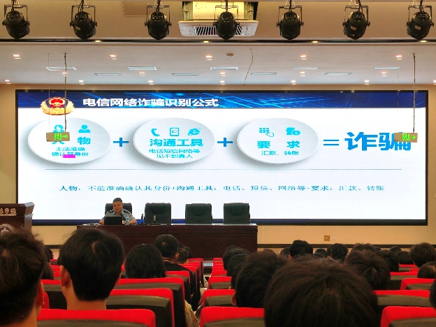 10月14日下午,信息工程学院联合后勤与保卫管理处、抚州市公安局东临新区分局,在经管楼报告厅举办反诈禁毒宣传讲座。本次活动聚焦青少年禁毒知识普及与电信网络诈骗防范,讲座结合案例剖析、互动讲解等形式,为同学们带来一堂生动而深刻的安全教育课。