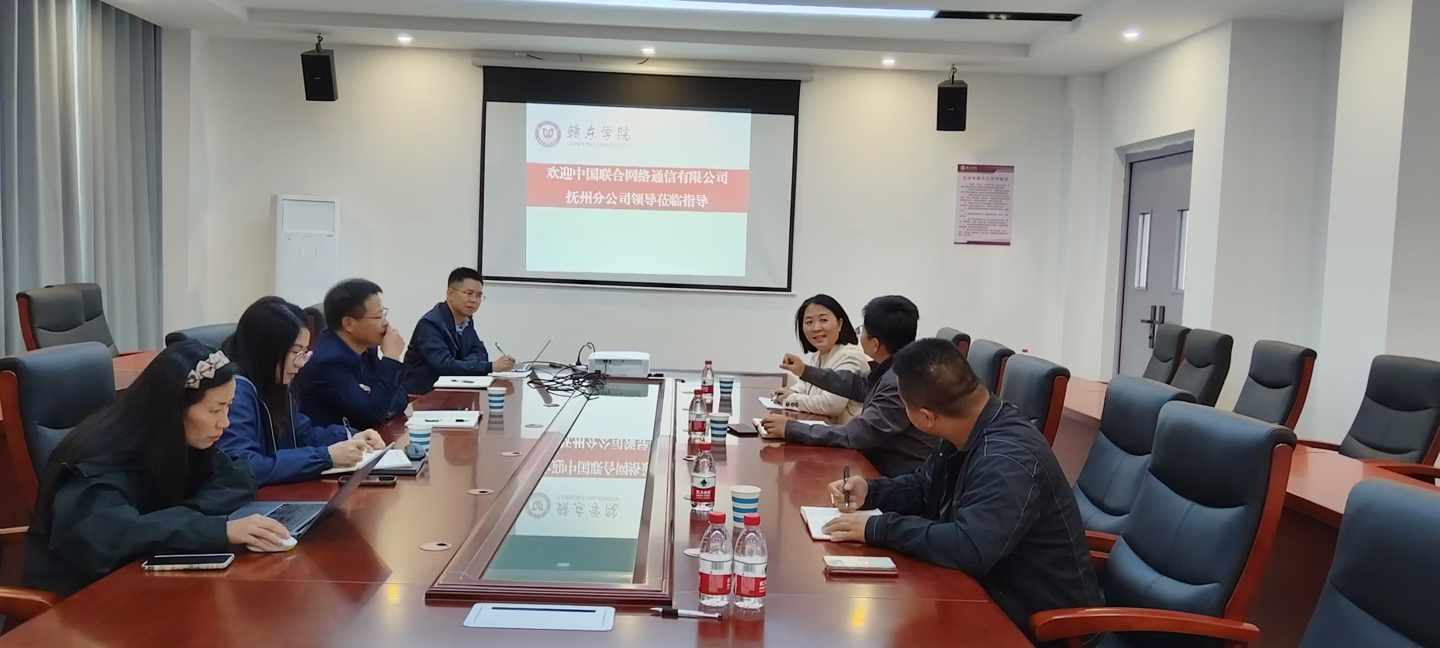 10月22日下午,中国联合网络通信有限公司抚州市分公司周慧珠、云网中心经理蔡文亮、工程师张乐俊一行到访信息工程学院,与学院院长蒋年德就深化产教融合、推动校企合作落地等事宜开展深入交流。通信与网络安全系主任蔡美芳及部分教师代表共同参与座谈。