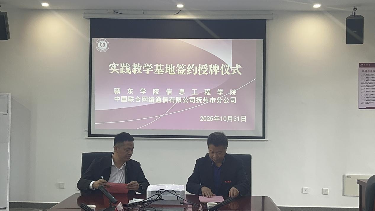 为深化校企协同育人机制,推动人才培养与产业需求紧密对接,共同服务区域数字经济发展。2025年10月31日上午,赣东学院信息工程学院与江西联通抚州分公司成功举行实践教学基地签约授牌仪式。信息工程学院院长蒋年德、网络工程教研室专业负责人周新卫、物联网工程教研室专业负责人刘伯成等教师代表,抚州联通党委委员、副总经理郭泳勇,云网中心副总经理蔡文亮,临川区分公司总经理周慧珠等企业代表共同出席仪式。