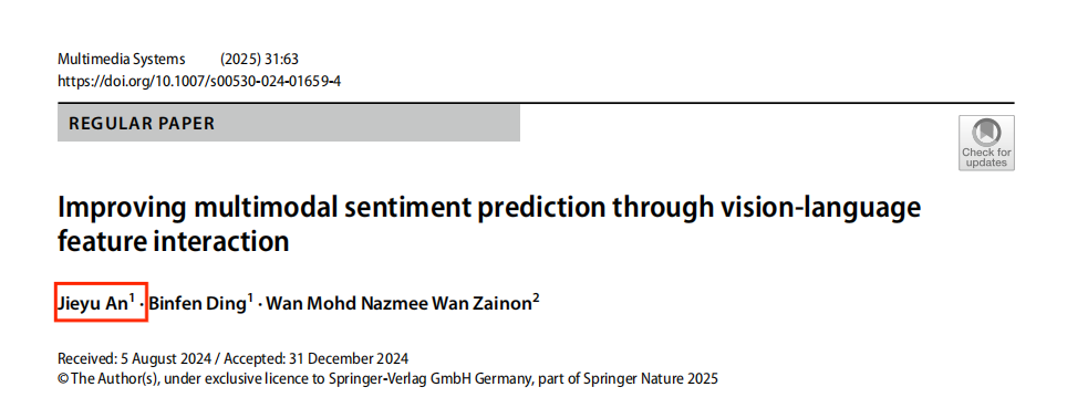 在情感计算领域,安洁玉博士团队的研究成果《Improving Multimodal Sentiment Prediction Through Vision-Language Feature Interaction》于2025年2月发表于《Multimedia Systems》。该研究提出了一种简洁的端到端模型,通过加强视觉与语言特征之间的交互,有效提升了多模态情感预测的性能,为多模态情感分析中的特征融合提供了新思路,有助于减少传统方法中常见的语义关联丢失问题,推动了该领域的技术发展。