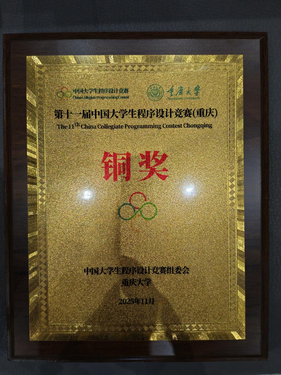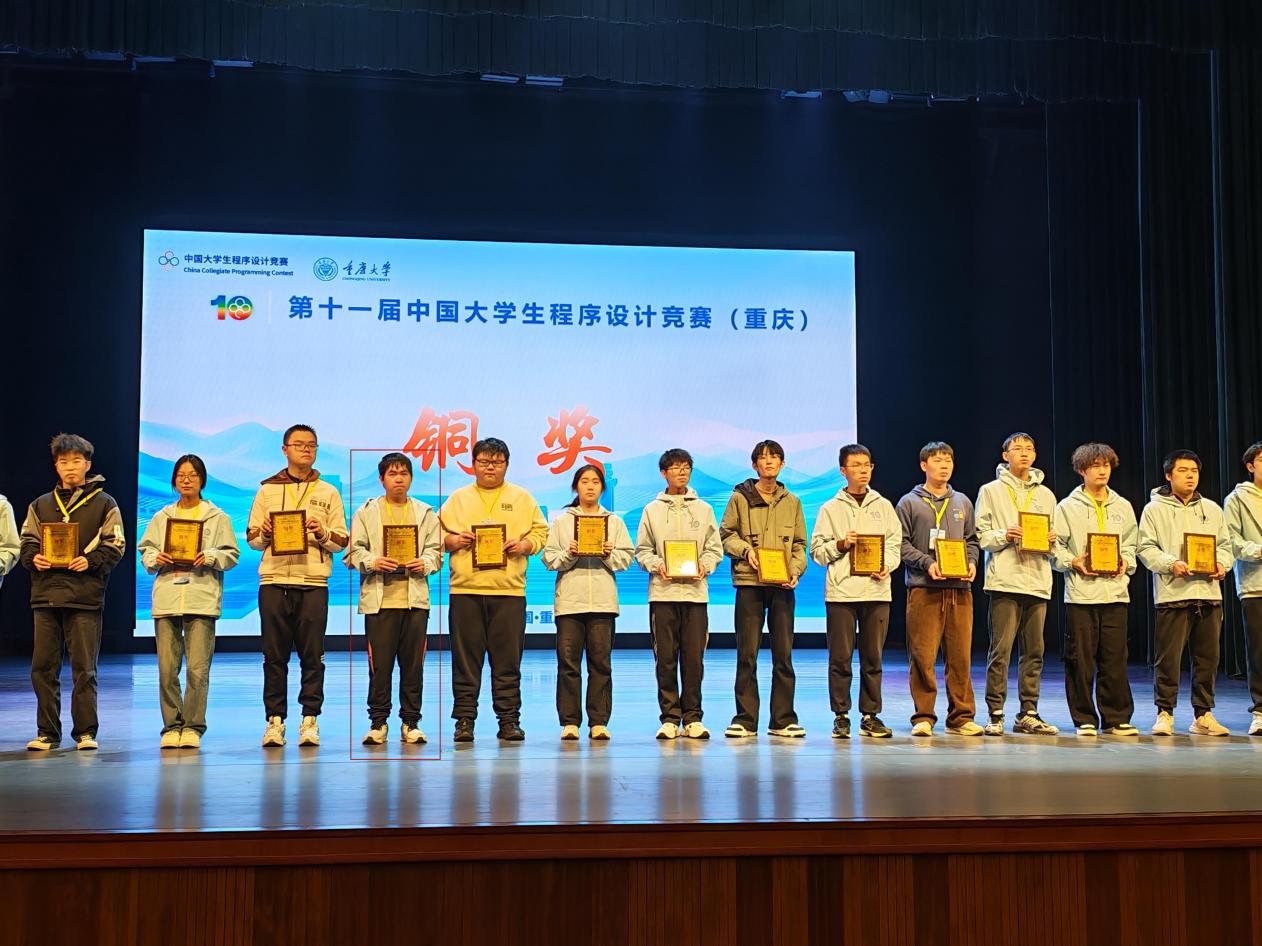 11月30日,第十一届CCPC中国大学生程序设计竞赛(重庆站)正式开赛。本次大赛吸引了来自清华大学、北京大学、浙江大学等国内近300支高校队伍现场参赛。经过五个小时的激烈角逐,由我校信息工程学院李壵隆、邓建豪两位同学组成的“世界遗忘我”参赛队伍发挥出色,成功斩获一枚宝贵的铜牌。